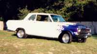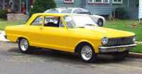 This is Don Berry's 1964 Chevy II sedan. Originally it had a 194 straight 6 with a 3-speed manual trans and only one option - an AM pushbutton radio. Don has recently installed a 355-hp ZZ4 small block with Corvette 2.5" Rams-Horns manifolds and 2.5" dual Flowmaster exhaust. Also added were a Centerforce clutch, an Auburn posi and disc brakes. It is a no rust, California car with original paint that Don uses as a commuter. The original bench seat has been replaced with Camaro buckets. Check out his webpage for more pics.