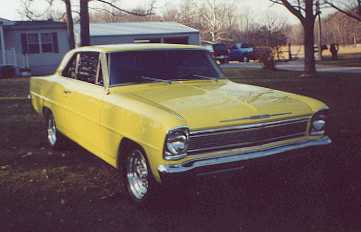 This is Wayne Hall's recently completed project, a 1966 Nova with a 283, Powerglide and A/C. He said it's a California car and was rust-free. The only non-stock addition he added are the chrome Rally wheels.