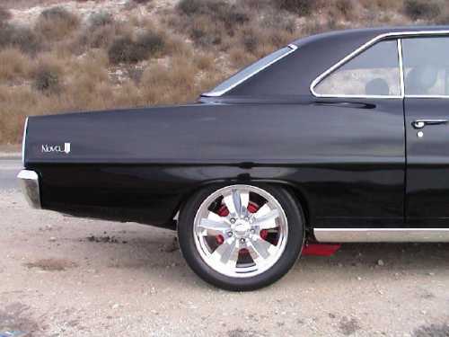 This is Tom Stich's 1966 Nova. It is a real SS currently with a Jon Barrett 420 Crusher/Cruzer motor, a Dr. Evil Pure Evil 700-R4 transmission and a Ford 9 inch rear with a 3.90 gears. It has a nasty cam so it shakes at idle and a gear drive that makes it sounds like it's blown. It has upgraded disc brakes in the front and some suspension mods and subframe connectors. The rear tires are Mickey Thompson Indy Profile II's. See more on his CarDomain site.