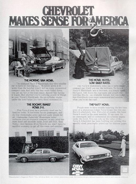 versatility. There was even a tent option for the hatchback Nova (long before the Pontiac