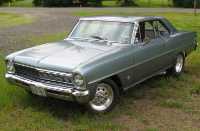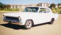 This is Wayne Hall's recently completed project, a 1966 Nova with a 283, Powerglide and A/C. He said it's a California car and was rust-free. The only non-stock addition he added are the chrome Rally wheels.