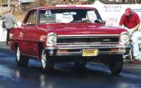 This 1966 Nova SS belongs to Chris Yates of Rochester, NY. It was resurrected from an old race car that was sponsored by a local radio station in the mid 70's. It is now fully street legal and runs 9.90 @ 137 without Nitrous. NOS is on the way for the fall of 2001. The engine is a home built 434-ci small block backed by a TH400 trans and a Dana 60 rear. Chris raced in DOT at 2 Super Chevy shows this year and received an Editors Choice Award at Epping, NH.