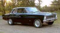 This is Tom Stich's 1966 Nova. It is a real SS currently with a Jon Barrett 420 Crusher/Cruzer motor, a Dr. Evil Pure Evil 700-R4 transmission and a Ford 9 inch rear with a 3.90 gears. It has a nasty cam so it shakes at idle and a gear drive that makes it sounds like it's blown. It has upgraded disc brakes in the front and some suspension mods and subframe connectors. The rear tires are Mickey Thompson Indy Profile II's. See more on his CarDomain site.